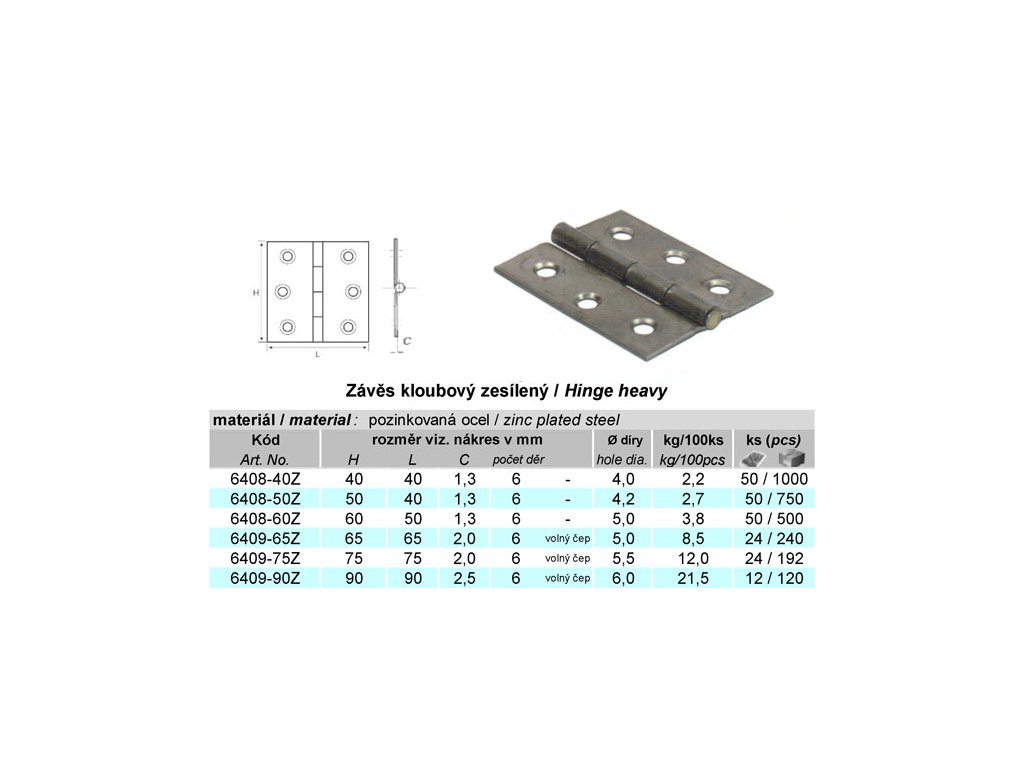 ávěs s volným čepem – 3 velikosti v rozměrové řadě: 70x60mm – 100x80mm, materiál: pozinkovaná ocel.