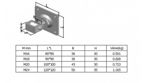 Závěs seřizovací plotna M20 100x100mm nosnost 50kgDoplňkové parametry