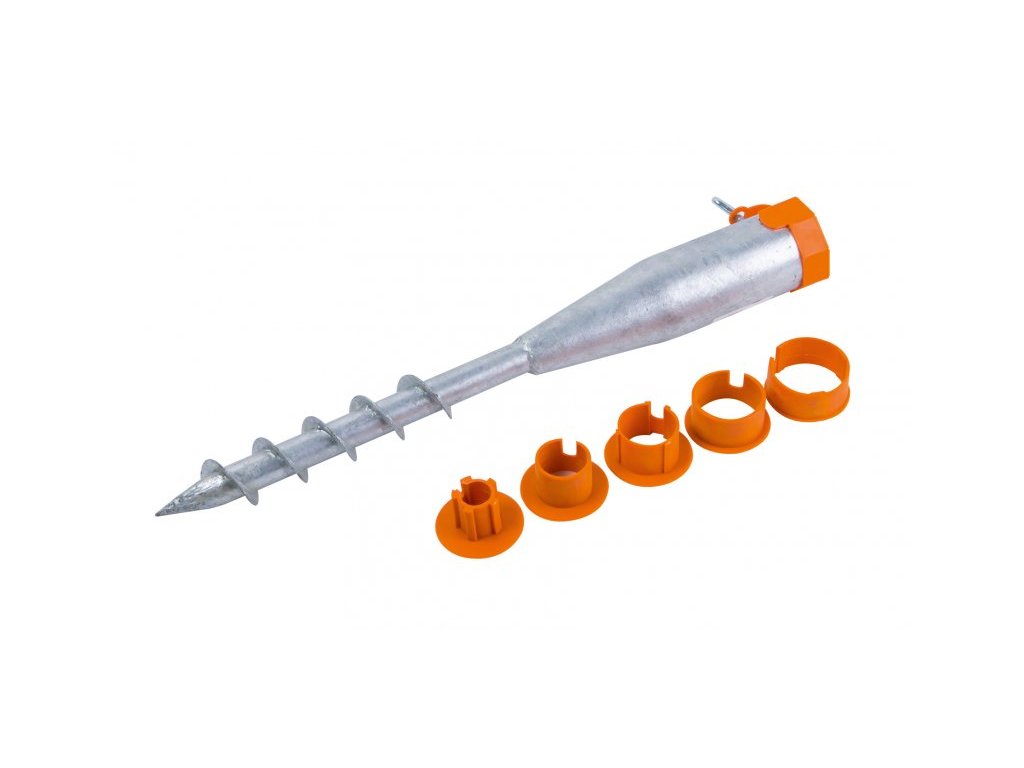 - Vybraný zemní vrut zašroubujeme do země ve směru hodinových ručiček. K tomu obvykle používáme speciální montážní tyče, které najdete taktéž v této kategorii.